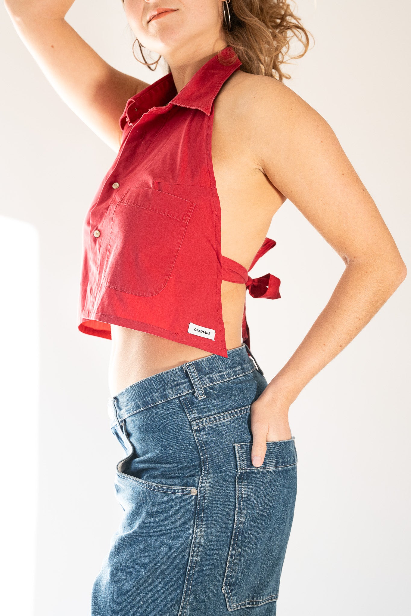 Top dos nu, upcylé à partir d'une chemise de seconde main.