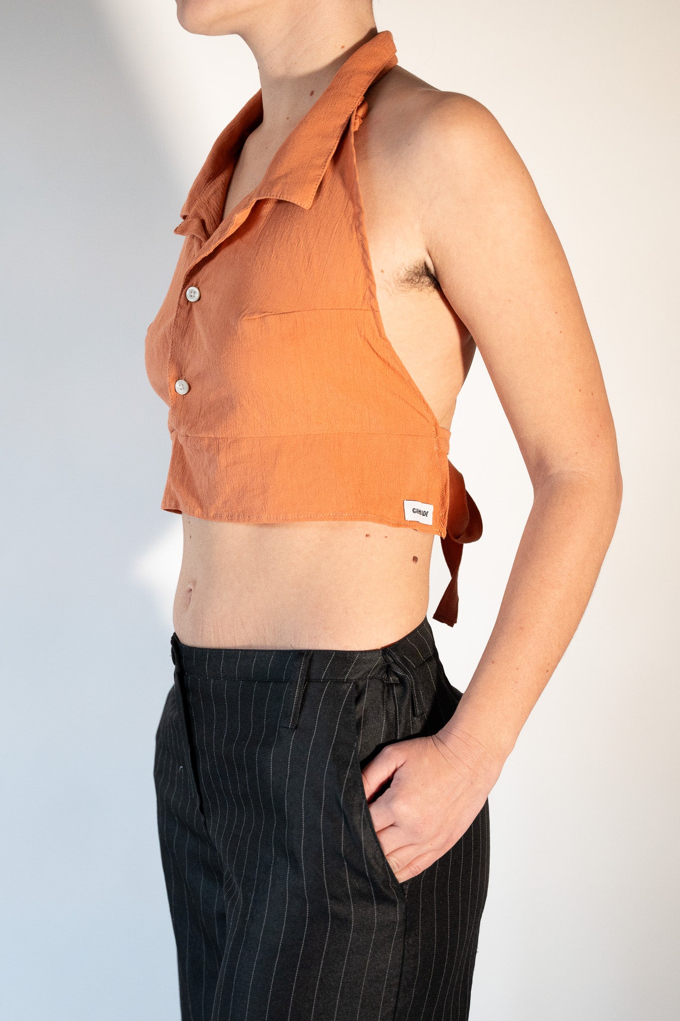 Top dos nu, upcylé à partir d'une chemise de seconde main.