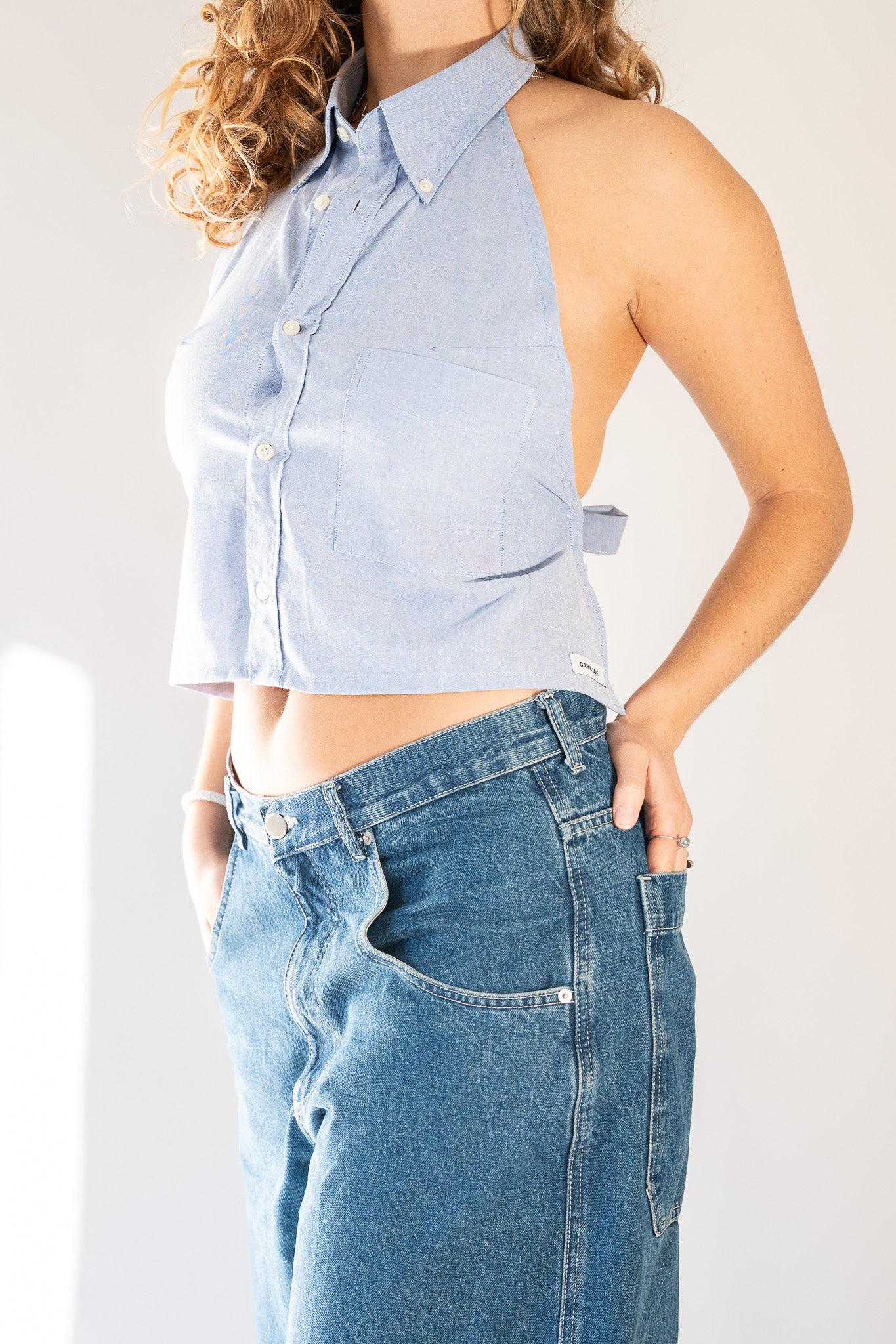 Top dos nu, upcylé à partir d'une chemise de seconde main.