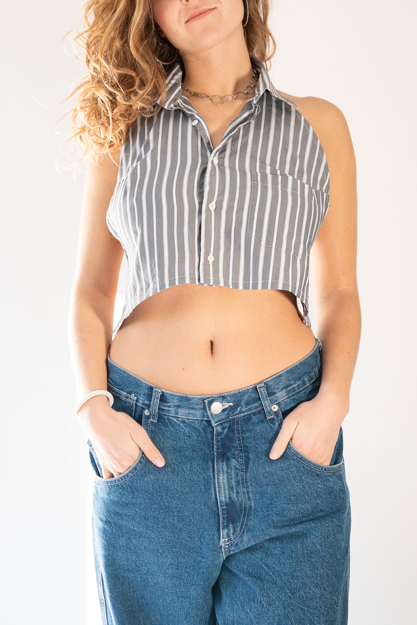 Top dos nu, upcylé à partir d'une chemise de seconde main.