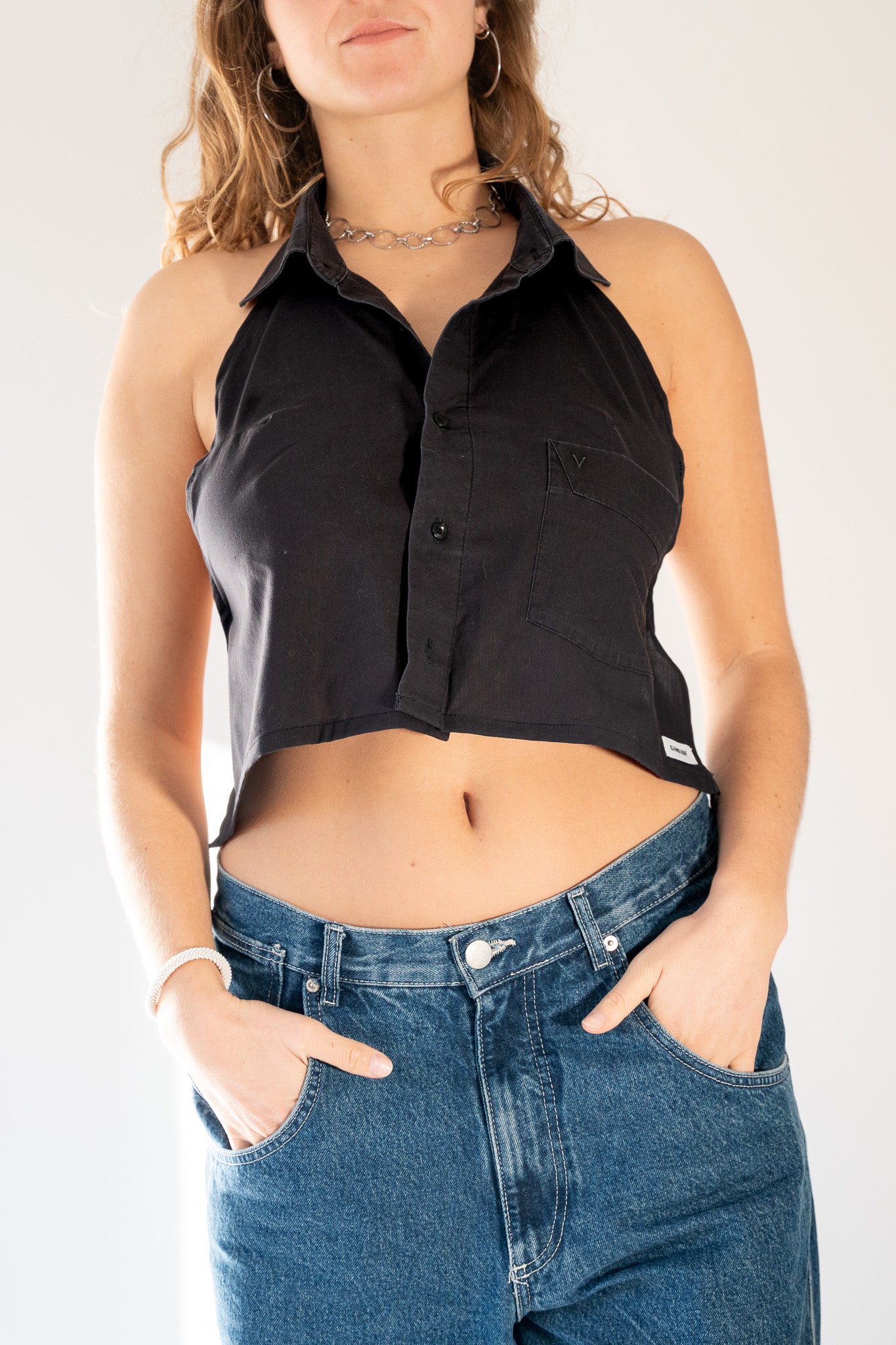 Top dos nu, upcylé à partir d'une chemise de seconde main.